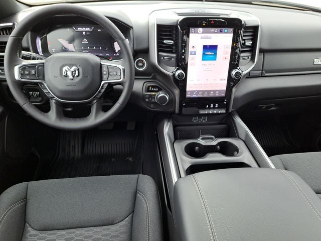 Bed Utility Group (Exterior 115V AC Outlet, MOPAR 4 Adjustable Cargo Tie-Down Hooks, MOPAR Spray in Bedliner, and Pick-Up Box Lighting), Big Horn Level 2 Equipment Group (115V Auxiliary Power Outlet, 115V Auxiliary Rear Power Outlet, 12 Touchscreen Display, 2nd Row in Floor Storage Bins, 3 Rear Seat Head Restraints, 4 Way Front Headrests, 400W Inverter, 4G LTE Wi-Fi Hot Spot, 9 Amplified Speakers with Subwoofer, Air Conditioning ATC with Dual Zone Control, Apple CarPlay, Auto Power-Folding Mirrors, Auto-Dimming Exterior Driver Mirror, Auto-Dimming Rear-View Mirror, Black Exterior Mirrors, Black Premium Power Mirrors, Body Color Fender Flares, Bucket Seats, Center Console Parts Module, Cluster 7.0 TFT Color Display, Configurable Drive Mode, Connected Travel and Traffic Services, Connectivity - US/Canada, Convex Wide-Angle Exterior Mirror Insert, Deluxe Cloth Bucket Seats, Disassociated Touchscreen Display, Exterior Mirrors Courtesy Lamps, Exterior Mirrors with Heating Element, Exterior Mirrors with Supplemental Signals, Front Seat Back Map Pockets, Full Length Floor Console, Global Telematics Box Module, Glove Box Lamp, Google Android Auto, GPS Antenna Input, GPS Navigation, HD Radio, Heated Front Seats, Heated Steering Wheel, Integrated Center Stack Radio, Integrated Voice Command with Bluetooth®, Leather Wrapped Steering Wheel, LED Dome Lamp with on/Off Switch, LED Footwell Lighting, Manual Adjust 4-Way Front Passenger Seat, Media Hub with 2 Charge Only USBs, Overhead LED Lamps, Power 2-Way Driver Lumbar Adjust, Power Adjust 8-Way Driver Seat, Power Adjustable Pedals, Premium Overhead Console, Radio: Uconnect 5 Navigation with 12.0 Display, Rear 60/40 Folding Seat, Rear Center Armrest, Rear Power Sliding Window, Rear Window Defroster, Remote Tailgate Release, Security Alarm, SiriusXM Radio Service, SiriusXM with 360L, Steering Wheel Mounted Audio Controls, Sun Visors with Illuminated Vanity Mirrors, Universal Garage Door Opener, and USB Host Flip), Night Edition (Accent Color Door Handles, Accent Color Premium Power Mirrors, Accent Color Tailgate Handle, Anti-Spin Differential Rear Axle, Black Exterior Truck Badging, Black Headlamp Bezels, Black Interior Accents, Black Painted Exterior Mirrors Caps, Black Tail Lamp Bezels, Body Color Front Bumper, Body Color Rear Bumper with Step Pads, Dual Exhaust with Black Tips, Grille Black Surround Black Mesh, RAM Grille Badge - Black, and Wheels: 20 x 9.0 Aluminum Painted Clad), Quick Order Package 27Z Big Horn, 33 Gallon Fuel Tank, 4-Wheel Disc Brakes, 48V Belt Starter Generator, 6 Speakers, ABS brakes, Air Conditioning, Alloy wheels, AM/FM radio, Apple CarPlay/Android Auto, Auto High-beam Headlights, Brake assist, Bumpers: chrome, Cloth Bucket Seats, Cluster 12 TFT Color Display, Compass, Delay-off headlights, Driver door bin, Dual front impact airbags, Dual front side impact airbags, Electronic Stability Control, Front anti-roll bar, Front Bucket Seats, Front Center Armrest w/Storage, Front fog lights, Front reading lights, Front wheel independent suspension, Fully automatic headlights, Heated door mirrors, Illuminated entry, Low tire pressure warning, Manual Adjust 4-Way Driver Seat, Manual Folding Exterior Mirrors, Manufacturer's Statement of Origin, MOPAR Front and Rear Rubber Floor Mats, MyFlexCare Service Plan, Occupant sensing airbag, Outside temperature display New vehicle pricing includes all offers and incentives. Buyer must qualify for employee pricing. Tax, Title, and Plate not included in vehicle prices shown and must be paid by the purchaser. While great effort is made to ensure the accuracy of the information on this site, errors do occur so please verify information with a Thelen sales representative. Price includes: $3500 - 2026 National Retail Consumer Cash . Exp. 02/02/2026 $500 - 2026 Great Lakes BC Auto Show Bonus Cash. Exp. 0