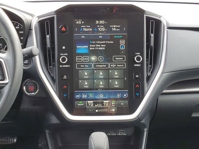- Radio: Subaru 11.6" Multimedia Plus System -inc: valet mode, AM/FM stereo, HD Radio, multi-touch gesture high resolution display screen, voice activated controls, Bluetooth® audio streaming and hands-free phone connectivity, Bluetooth® hands-free SMS text messaging connectivity, iPod control capability, smartphone integration: wired and wireless Android Auto w/full screen view, wireless Apple CarPlay w/full screen view and wireless connection, USB and Over The Air (OTA) audio system update, audio system and Bluetooth® steering wheel control switches, 6 speakers (2 dash panel tweeter, 2 front door, 2 rear door), illuminated 3.5mm auxiliary input jack, illuminated USB A and C input charge ports, roof mounted satellite and connected services, roof mounted black antenna, connected services operation indicator, SOS emergency assistance (red button) and ehanced roadside assistance (blue i-button)